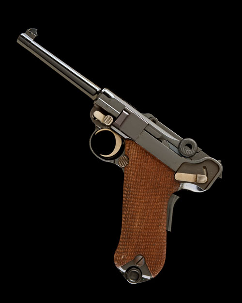 manufactured by Mauser in 1973, with blued 4 3/4in. barrel, dove-tailed blade fore-sight, standing notch rear-sight to rear of the toggle, the top of toggle stamped 'ORIGINAL MAUSER', blued frame with side and grip safeties, chequered walnut grips and plastic based magazine, the pistol appearing unfired; TOGETHER WITH its manufacturers blue card and polystyrene carton (lid distressed), the tray containing the pistol, an additional magazine, a replica stripping-tool marked 'MAUSER' and an alloy cleaning rod