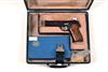 for 1974, with two 4 1/2in. barrels (one for each calibre), two corresponding blued and sighted slides, blued frame, spurred hammer, chequered walnut grips and heel magazine release; TOGETHER WITH its manufacturers bespoke abs plastic case with compartments for the pistol and the card carton for the conversion unit and including a magazine for both calibres