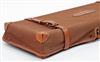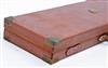 A VIRTUALLY UNUSED BRASS-CORNERED OAK AND LEATHER SINGLE GUNCASE,