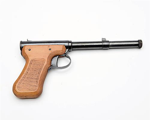 A .177 PUSH-IN BARREL COCKING AIR-PISTOL SIGNED ORIGINAL, MODEL '2', no visible serial number, possibly pre-war, with blued receiver and chequered and grooved one-piece wood grip, much finish remaining