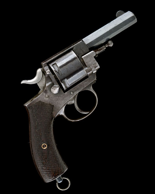 circa 1875, with octagonal 3 1/4in. sighted barrel, the top-strap with central sighting groove and marked 'JE MAINTIENDRAI' and 'JOH MUNTS AMSTERDAM', plain cylinder stamped 'L.P.', frame marked 'J. MARECHAL, CHERATTE', with hinged loading gate and rocking side safety-catch, centrally mounted ejector-rod, chequered wood grips, the top of backstrap with a lion trademark and 'MUNTE', lanyard ring to heel; COMPLETE WITH a period leather holster