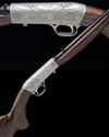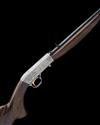 serial number on buttplate only, 19 3/8in. nitro barrel with folding open sights and bead fore-sight, lacquered silver receiver carved with grape and vine motifs, surrounding game scenes of squirrel, coypu and duck, gold-washed trigger, 14in. figured pistolgrip stock with steel buttplate, weight 4lb. 14oz.