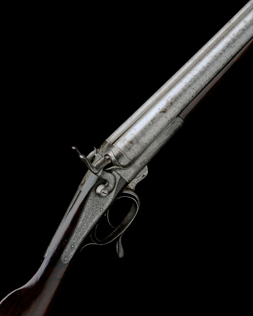 A RARE 12-BORE PERKES 1876 PATENT SELF-COCKING PUSH-FORWARD UNDERLEVER HAMMERGUN serial no. 4118,
