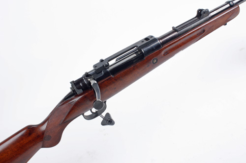 BRNO .243 WIN. 'VZ 24' BOLT-MAGAZINE SPORTING RIFLE, serial No. 2056U3, 22in. nitro barrel, ramp-mounted fore-sight, tangent rear-sight (missing), action with thumb cut-out manual safety, detachable floorplate, 13 1/8in. semi-pistolgrip stock, steel butt plate. weight 8lb