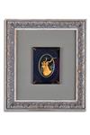 In a grassland setting with gold highlights and gold oval border and with fine acanthus scroll detailing and gold-inlaid fleur de lys motifs, signed by the engraver