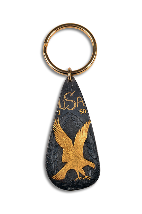 of teardrop form, inlaid 'USA 1 of 50' and with a golden eagle encompassed in a laurel wreath, signed by the engraver