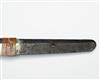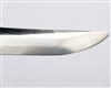 early 19th century, with 25 3/4in. blade (some re-polishing), straight visible 'hamon', copper 'habaki' and tang with single 'mekugi-ana', in a later shirasaya with a silk sword-bag