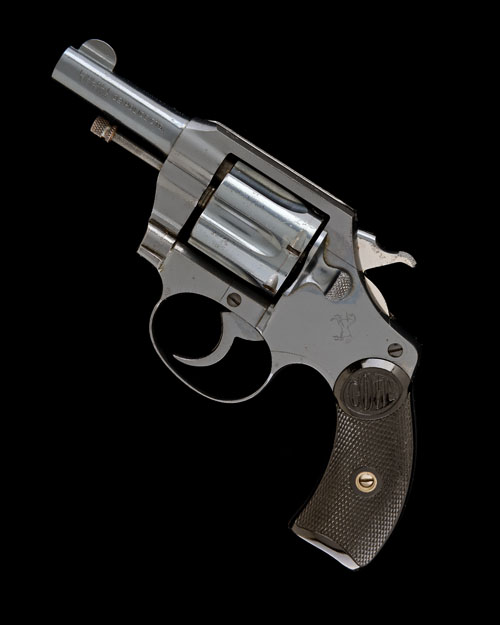 for 1936, with 2 3/8in. signed blued barrel, crescent fore-sight, top-strap with sighting groove and matted surface, fluted swing-out cylinder, solid blued frame, chequered black hard-rubber grips, appearing unfired; COMPLETE WITH its manufacturers card carton