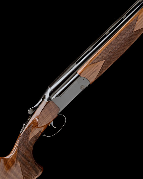 28in. nitro barrels with concave tapered ventilated file cut rib, 2 3/4in. chambers, multichokes (with spares), hold-open toplever, manual safety, plain blued action gold-inlaid with the model designation, 15 1/4in. figured pistolgrip stock (cracks at hand) including 1 1/4in. rubber recoil pad, weight 7lb. 15oz., in a universal case