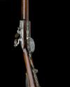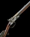 A 16-BORE FLINTLOCK SINGLE-BARRELLED SPORTING RIFLE WITH BLUE & GILT BARREL, UNSIGNED, no visible serial number,