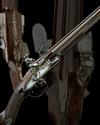 A 20-BORE FLINTLOCK SILVER-MOUNTED DOUBLE-BARRELLED SPORTING GUN, no visible serial number,