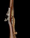 A 20-BORE FLINTLOCK SINGLE-BARRELLED SPORTING GUN WITH GILDED MOUNTS, no visible serial number,