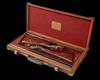 28 1/2in. Whitworth-steel nitro chopperlump barrels, ribs engraved 'J. PURDEY & SONS. AUDLEY HOUSE. SOUTH AUDLEY STREET. LONDON. MADE OF SIR JOSEPH WHITWORTH'S FLUID PRESSED STEEL.', 2 1/2in. chambers, bored approx. cyl. choke in all, rounded bar actions with removable striker discs, toplevers gold-inlaid '1' and '2', automatic safeties with gold-inlaid 'SAFE' details, cocking-indicators, finely engraved with acanthus scrollwork and floral bouquets, retaining very slight traces of original colour-hardening and finish, 14 5/8in. (refinished) figured stocks, weight 6lb. 10oz., in their brass-cornered oak and leather case with some accessories