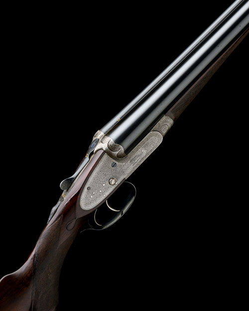 29in. replacement nitro barrels (by William powell & Son in 1962), rib gold-inlaid '2' and with Powell details, 2 1/2in. chambers, bored approx. imp. cyl. and 1/4 choke, carved arcaded fences with side-clips, removable striker discs, toplever gold-inlaid '2', automatic safety with gold-inlaid 'SAFE' detail, protruding tumbler pivots with gold-inlaid cocking-indicators, best fine acanthus scroll engraving, retaining very slight traces of original colour-hardening, 14 5/8in. figured stock with Prince of Wales semi-pistolgrip, horn pistolgrip-cap and buttplate, fore-end with light repair, weight 6lb. 11oz.