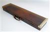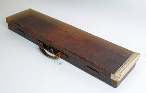 A SINGLE LEATHER GUNCASE, fited for 30in. barrels, the interior lined with maroon baize, brass lock (key missing, distressed