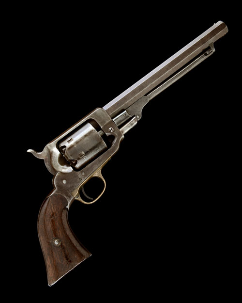 circa 1862, with octagonal 6in. barrel signed 'E. WHITNEY N. HAVEN', bead fore-sight, grooved top-strap, plain cylinder, plain iron frame, smooth two-piece walnut grips, brass trigger-guard and under-barrel hinged loading lever