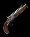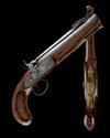 A .577 PERCUSSION SINGLE-SHOT HOUSE-PISTOL WITH SPRUNG BAYONET, SIGNED J. SKELDING?, no visible serial number,