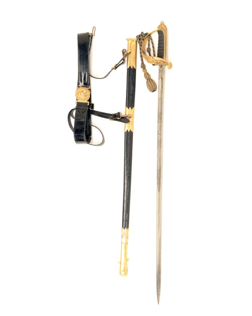 A BRITISH NAVAL OFFICER'S 1827 PATTERN SWORD AND BELT, serial no. 4216,