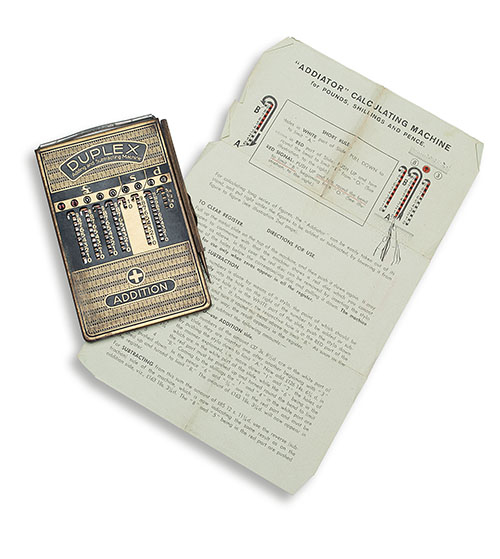 A SCARCE 'ADDIATOR' DUPLEX ADDING AND SUBTRACTION MACHINE FOR POUNDS, SHILLINGS AND PENCE, serial no. 157900,