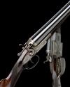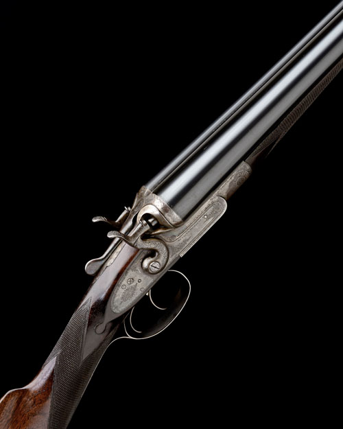 30in. sleeved nitro barrels, the rib engraved 'WESTLEY RICHARDS & CO. LONDON.', 2 1/2in. chambers, bored approx. 1/4 and 3/4 choke, carved percussion fences, rebounding sidelocks, border and partial scroll engraving, retaining traces of original colour-hardening and finish, 14 1/4in. stock including buttplate, weight 7lb. 5oz., in its Westley Richards leather-bound oak case