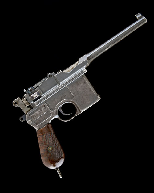 for between 1911-15, with 5 1/2in. barrel, block and blade fore-sight, elevating rear-sight graduated to 1000 metres, blued receiver and frame, the front of the grip-strap marked 'F.M.G.Z. 94. 24.', 31 groove walnut grips, lanyard ring at heel, the whole retaining a strong amount of original blued finish