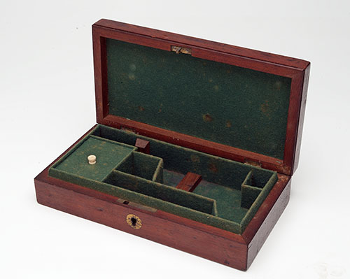 AN ENGLISH MARKET MAHOGANY STORAGE CASE FOR A POCKET PERCUSSION OR RIMFIRE REVOLVER,