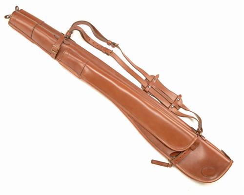 fitted for 32in. barrels, leather shoulder strap, brass fittings