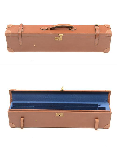 fitted for 27in. barrels, the interior lined with blue baize, brass lock (key missing)