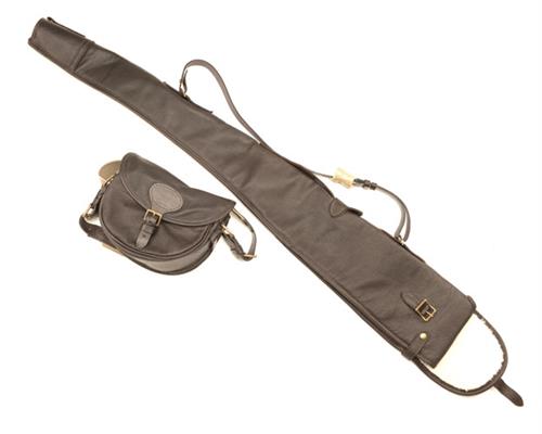 AN UNUSED PARSONS SINGLE LEATHER FLEECE-LINED GUNSLIP WITH MATCHING CARTRIDGE BAG,