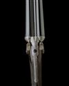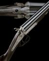 30in. sleeved nitro barrels, rib engraved 'CHARLES LANCASTER. 151 NEW BOND ST. LONDON. PATENT BREECH LOADER.' 2 3/4in. chambers, bored approx. imp. cyl. and 1/4 choke, action incorporating J. Purdey 1863 second patent thumbhole underlever and Purdey 1863 double bite, patent no. 1104 of 2nd May 1863, striker discs, rebounding back-action locks with high spurred lagotic hammers, the breasts of the hammers hitting the strikers at the base of the standing breech, fine border and acanthus scroll engraving, the action marked 'CHARLES LANCASTER'S PATENT', top tang engraved '2', brushed finish overall, 14 1/2in. highly-figured stock including 3/4in. ebonite extension, minor crack at hand, weight 6lb. 10oz.
