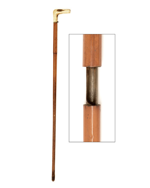 A 7mm (C/F W-S) SINGLE-SHOT WALKING-STICK GUN, MODEL 'DUMONTHIER'S PATENT', no visible serial number,
