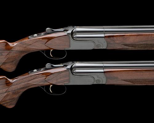 28 1/2in. nitro barrels with 7mm ventilated matt ribs, gold-inlaid at the breech ends 'I' and 'II', 2 3/4in. chambers, multichokes (with spares), hold-open toplevers gold-inlaid 'I' and 'II', manual safeties with integral barrel selector switches, gold-washed single triggers, blacked actions with border engraving, the left sides with the model designation, triggerplates signed 'GOLDANI INC.', 15in. figured semi-pistolgrip stocks, small crack at hand No.2, weight 7lb. 3oz., in their universal motor case