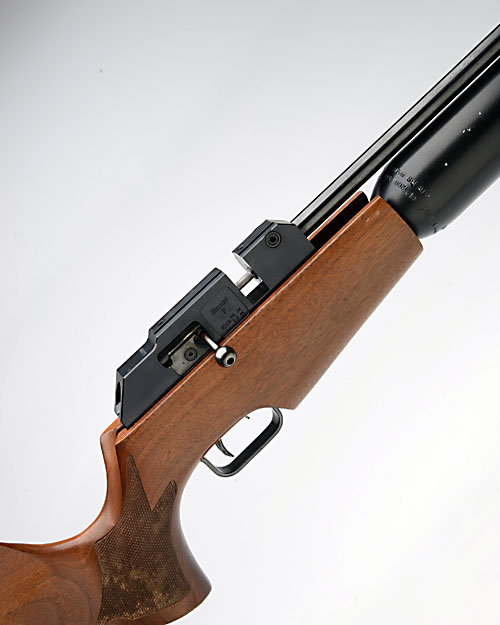 AN FAC-RATED .22 PRE-CHARGED PNEUMATIC AIR-RIFLE SIGNED THEOBEN, MODEL 'RAPID 7/12', serial no. 002791, circa 1995, with 25 1/2in. barrel including built-on sound moderator, blued receiver with bolt-action operation, walnut half-stock and large buddy-bottle, including a 12-shot magazine