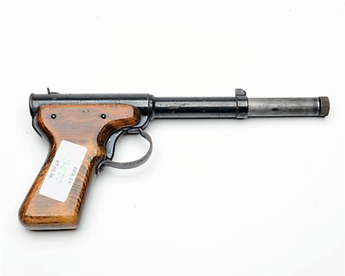 A .177 PUSH-IN BARREL AIR PISTOL SIGNED DIANA, MODEL 2, no visible serial number,