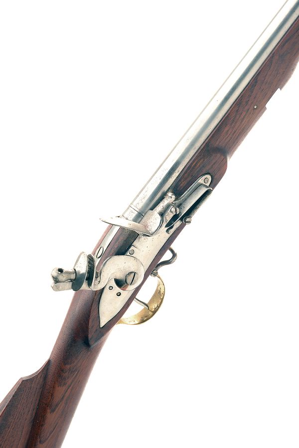 A REPRODUCTION 10-BORE FLINTLOCK MUSKET, UNSIGNED, MODEL BROWN BESS CARBINE, serial no. 1247,