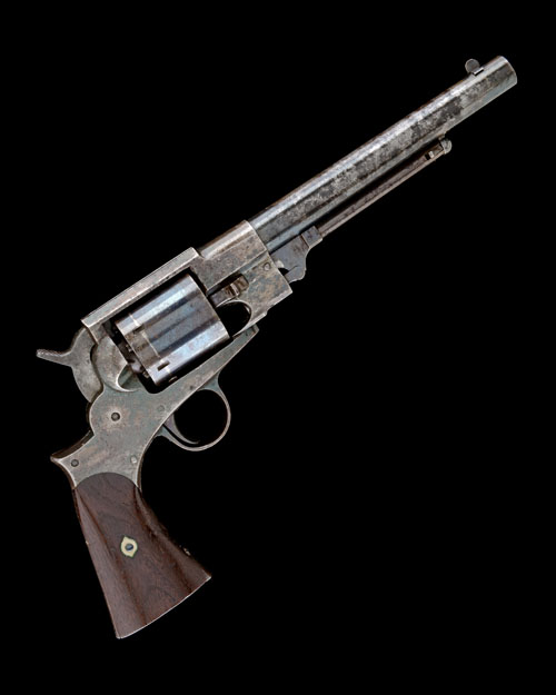 circa 1863-64, with round 7 1/2in. barrel, plain cylinder with recessed nipples, solid frame with rare spring retaining catch for cylinder, the top-strap signed alongside the sighting groove 'FREEMAN'S PAT DECB. 9 1862' and 'HOARD'S ARMORY, WATERTOWN, N.Y.', single action trigger-mechanism, smooth flared walnut grips and articulated under-barrel loading lever, strong traces of original finish throughout