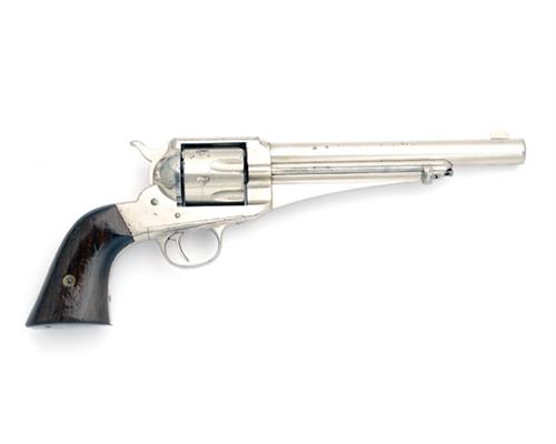 circa 1880, with 7 1/2in. nickel-plated barrel, plated fluted cylinder, plated iron solid frame with side loading gate and plated hammer, webbed under-barrel ejector-rod and smooth walnut two-piece grips, the whole retaining virtually all its original factory nickel-plate