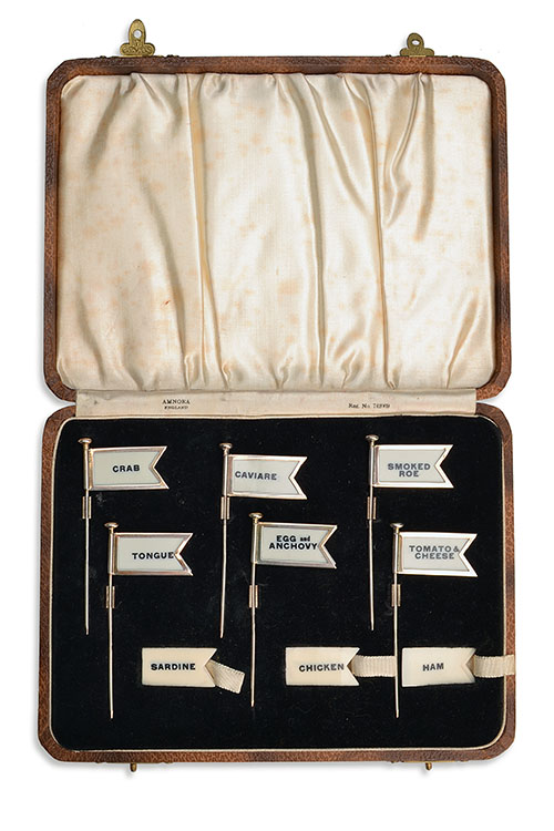 AMNORA A CASED SET OF SILVER SANDWICH FLAG MARKERS,