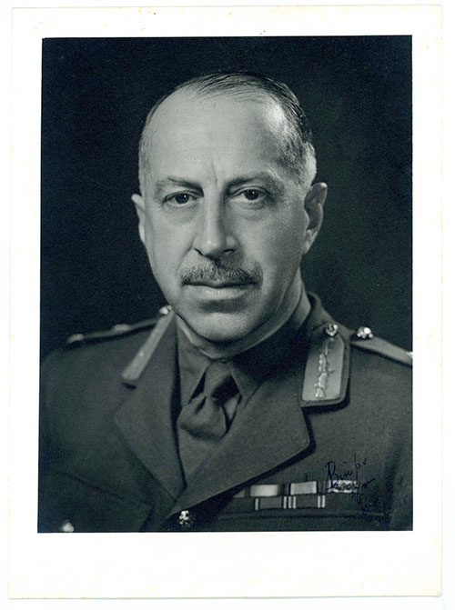 issued by Canadian Military H.Q. and approx. 9 1/2in. x 7in., a study of General Harry Crerar, C.-in-C. of Canadian troops, with personal dedication to corner (indistinct)