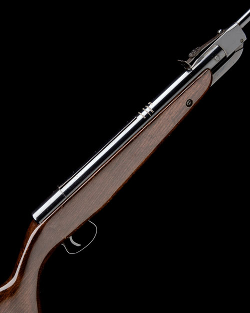 circa 1965, with blued 17in. sighted barrel, blued air-chamber with applied rail for a telescopic sight, plain beech half-stock, the whole in fine condition and appearing little used
