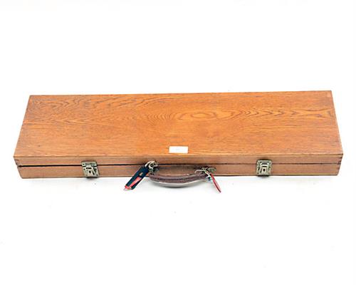 AN OAK SINGLE GUNCASE, re- fitted for 28in. 12-bore barrels, the interior lined with green baize, a Watson & Handcock trade label, two clasps