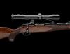 20 1/4in. nitro barrel with block-mounted open sights and ramp-mounted blade fore-sight, the receiver mounted with a Zeiss Diavari-Z 1,5...6x42 telescopic sight in quickly-detachable mounts, tang safety, set trigger, detachable box magazine, full length figured pistolgrip stock with cheekpiece and hogsback comb, sling swivels, 14 1/2in. pull including 1in. ventilated rubber recoil pad