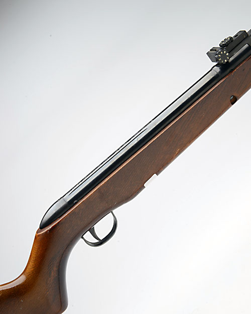A .22 BREAK-BARREL AIR-RIFLE SIGNED WEBLEY, MODEL 'HAWK MKIII', serial no. 552512, circa 1978, with 17in sighted barrel, plain air-chamber with the model details and later style beech stock, worn