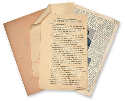 dated 31st October 1952 and written during the early years of N.A.T.O., containing Dempsey's thoughts as to the possibility of a third World War (he thought it by no means impossible), and how the U.K. would conduct herself should this arise, together with a page from The Illustrated London News, 19th May 1951 detailed Dempsey's responsibilities in the event of war.