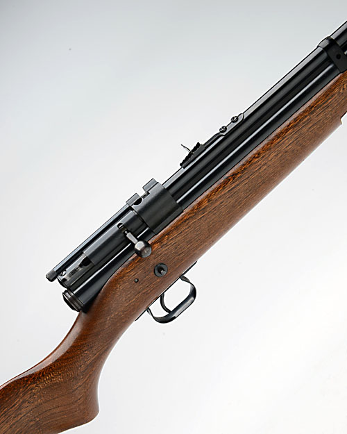 A .22 CO2 POWERED REPEATING AIR-RIFLE SIGNED CROSMAN, MODEL '400', no visible serial number, first varient, 1957-62, with blued 20in. barrel, bolt-action receiver with tubular magazine, walnut half-stock with push-through safe , collectible condition (untested)