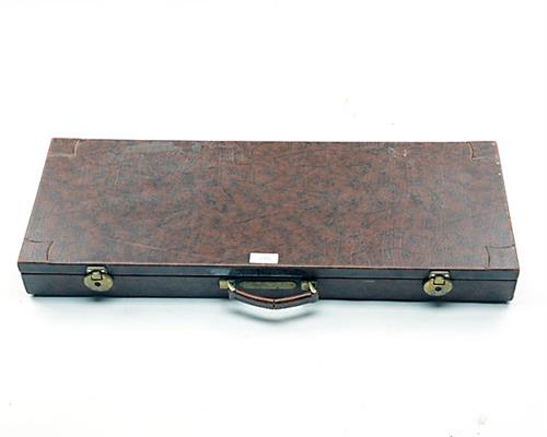 A LEATHERETTE SINGLE GUNCASE WITH PROVISION FOR AN EXTRA SET OF BARRELS,