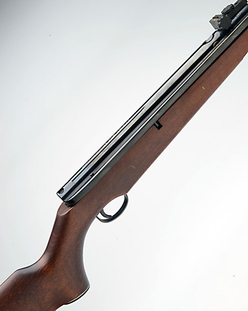 A .22 SIDE-LEVER AIR-RIFLE SIGNED WEBLEY. MODEL 'VISCOUNT', serial no. 25491, circa 1980, with blued sighted 18 1/2in. barrel, blued air-chamber railed for a telescopic sight and plain beech half-stock, appearing little used