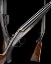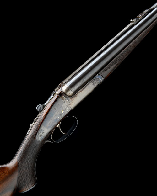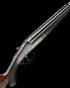 25in. nitro chopperlump barrels with matt sight rib, open sights and two folding leaf sights marked for 100, 200 and 300 yards, ramp-mounted bead fore-sight, action with removable striker discs, cocking lever return studs, elongated top strap, manual bolted safety with gold-inlaid 'SAFE' detail, gold-inlaid cocking-indicators, border engraving with scrolled detailing, the makers name inlaid in gold on the lockplates, retaining traces of colour-hardening, 14 7/8in. pistolgrip stock with cheekpiece, engraved steel pistolgrip-cap, sling eyes and including 3/8in. rubber recoil pad, fore-end with grip-catch release lever, weight 8lb. 13oz.