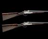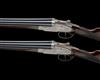 26in. nitro chopperlump barrels, the barrels engraved with the makers details, the ribs gold-inlaid '1' and '2', 2 3/4in. chambers, bored approx. imp. cyl .and 1/2 choke (both), Holland & Holland type self-opening actions, toplevers gold-inlaid '1' and '2', removable striker discs, automatic safeties, hand-detachable lockplates, articulated front triggers, rolled-edge triggerguards gold-inlaid with a fleur de lys and 'AC', bright finish, 15in. stocks, weight 6lb. (both)
