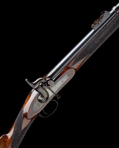 circa 1860, with blued 33in. barrel, block and blade fore-sight, elevating ladder rear-sight, London commercial proofs, borderline engraved lock signed 'ENFIELD' (colour faded), chequered walnut three-quarter stock with borderline engraved iron furniture including heel-plate, trigger-guard and barrel-bands, borderline engraved nose-cap and iron jag-ended under-barrel cleaning rod, bayonet lug attached to right side of muzzle, the whole retaining much original finish except where noted and generally appearing little used